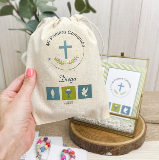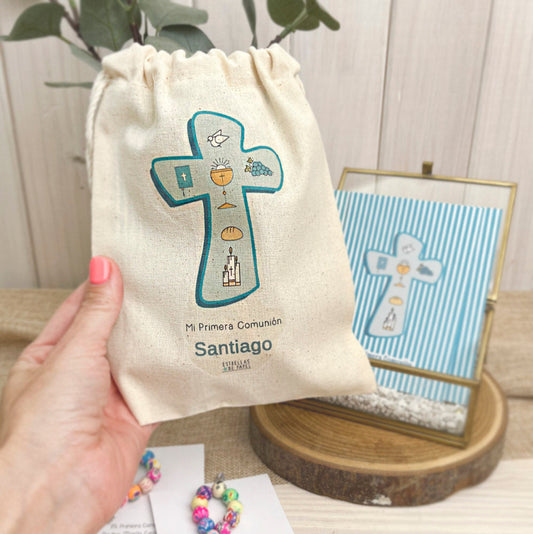 Bolsa para santitos primera comunión niño: Símbolos Rayas Calipso