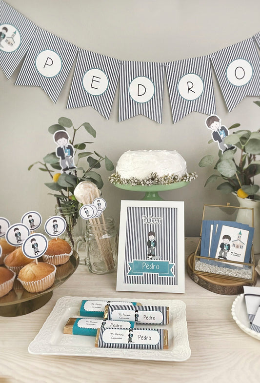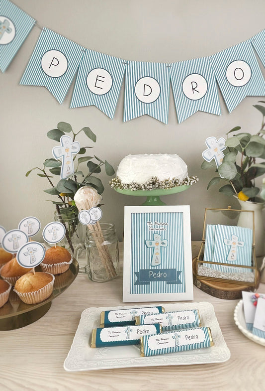 Decoración primera comunión niño: Kit Deco Símbolos Rayas Calispo