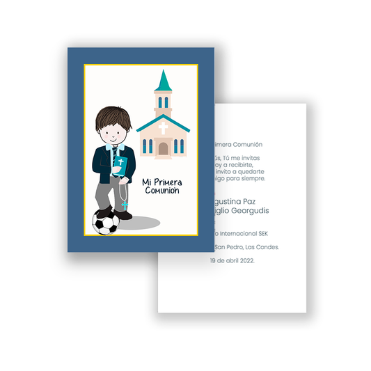 Santito primera comunión niño: Niño Con Pelota De Fútbol