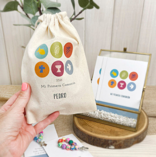 Bolsa para santitos primera comunión niño: Padre Nuestro Colores
