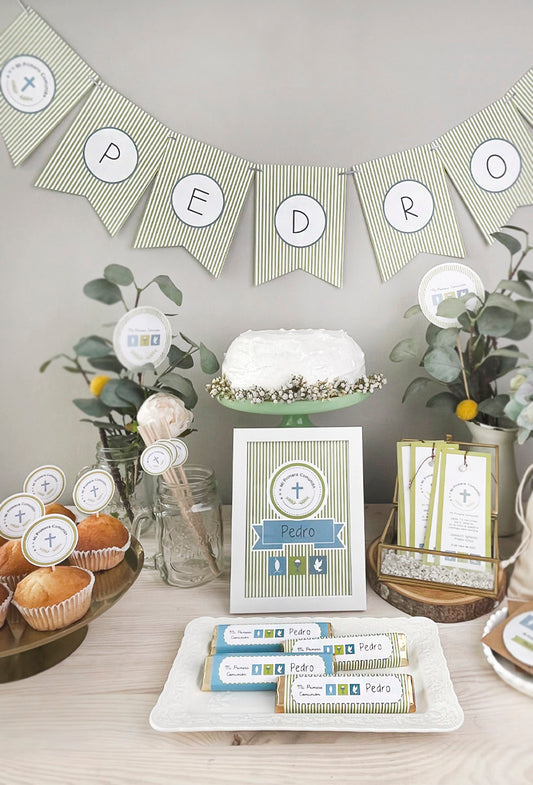 Decoración primera comunión niño: Kit Deco Símbolos Rayas Verde